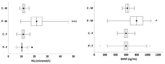 | BDNF (ng/mL) | 827.2 ± 441.3 | 824.7 ± 416.7 | 0.040 | 683.4 ± 413.9 | 592.5 ± 220.2 | ns | ns | 0.011 |