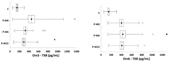 | omega-6/omega-3 vs. TXB | 19 | 0.520 | 0.01 |