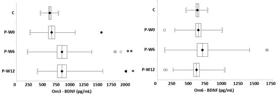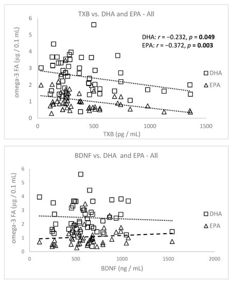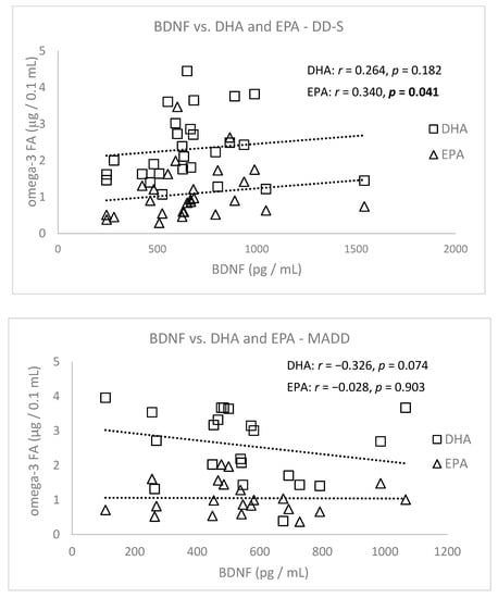- Pawełczyk, T.; Grancow-Grabka, M.; Trafalska, E.; Szemraj, J.; Żurner, N.; Pawełczyk, A. An increase in plasma brain derived neurotrophic factor levels is related to n-3 polyunsaturated fatty acid efficacy in first episode schizophrenia: Secondary outcome analysis of the OFFER randomized clinical trial. Psychopharmacology 2019, 236, 2811–2822. [Google Scholar] [CrossRef]