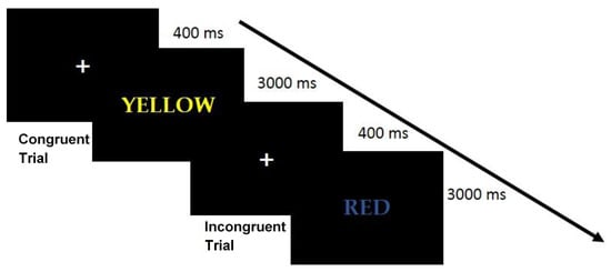 - Stroop, R. Studies of interference in serial verbal reactions. J. Exp. Psychol. 1935, 18, 643–662. [Google Scholar] [CrossRef]