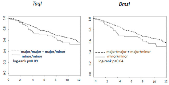 Kaplan and Meier curves of DFS and for BsmI and TaqI.