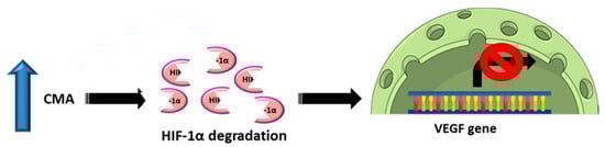 Schematic representation of our hypothesis connecting the regulation of VEGF expression and chaperone-mediated autophagy (CMA) activity.