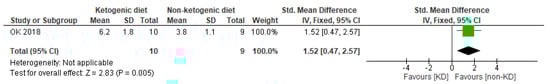Forest plot of standardized mean difference in fixed effects model for ketosis in comparison of KD and non-KD group.