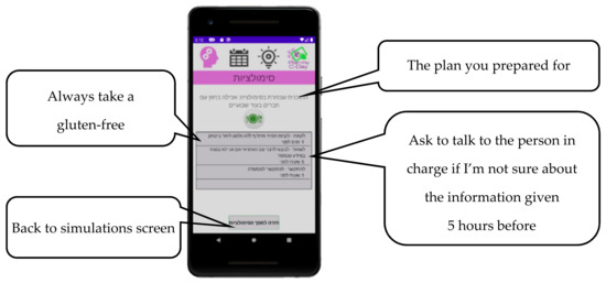 Effective self-management skills for a gluten-free diet in CD, which are vital to managing the health condition, involve navigating daily challenges, solving problems, and making decisions [9,12,13]. Learning, practicing, and acquiring these skills is particularly important in the crucial developmental–transitional period of adolescence [3]. In recent years, mHealth has been found to be useful in promoting chronic health management [25]. This proof-of-concept study demonstrated that the content, features, and functions of the Plan My C-Day mobile application operated well, and the simulations were easy to understand and complete. Plan My C-Day is a mobile application designed specifically to promote self-management cognitive skills among adolescents with CD and shows promise as a baseline to progress with further development. Further development should create the option to add self-created activities tailored to each individual’s daily life events and to adapt the simulations to different languages and cultures.