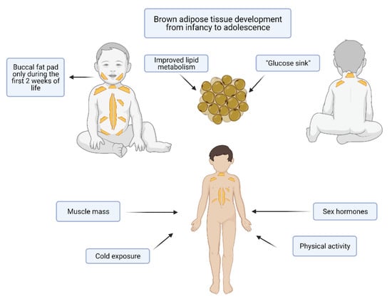 - Symonds, M.E.; Pope, M.; Budge, H. The Ontogeny of Brown Adipose Tissue. Annu. Rev. Nutr. 2015, 35, 295–320. [Google Scholar] [CrossRef] [PubMed]