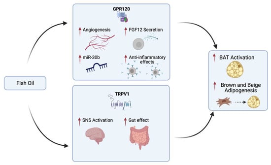 - Lund, J.; Larsen, L.H.; Lauritzen, L. Fish Oil as a Potential Activator of Brown and Beige Fat Thermogenesis. Adipocyte 2018, 7, 88–95. [Google Scholar] [CrossRef]