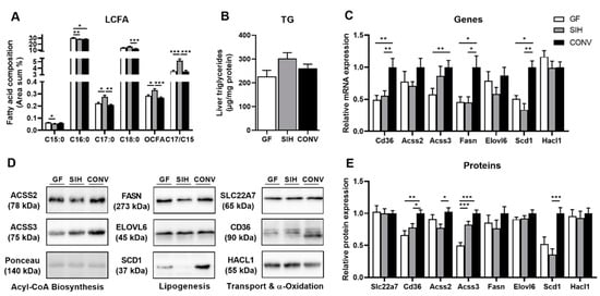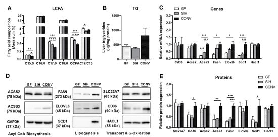 3.1. Phenotype and Hepatic Lipid Metabolism of Mice Harboring Different Microbial Status