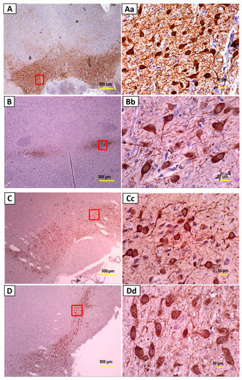 - Ross, G.W.; Petrovitch, H.; Abbott, R.D.; Nelson, J.; Markesbery, W.; Davis, D.; Hardman, J.; Launer, L.; Masaki, K.; Tanner, C.M.; et al. Parkinsonian signs and substantia nigra neuron density in decendents elders without PD. Ann. Neurol. 2004, 56, 532–539. [Google Scholar] [CrossRef]