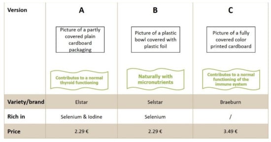 APA StyleKleine-Kalmer, R., Profeta, A., Daum, D., & Enneking, U. (2021). Pre-Launch Exploration of Consumer Willingness to Purchase Selenium- and Iodine-Biofortified Apples—A Discrete Choice Analysis of Possible Market Settings. Nutrients, 13(5), 1625. https://doi.org/10.3390/nu13051625