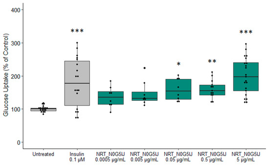 3.1. NRT_N0G5IJ Improves Glucose Uptake in Human Skeletal Muscle Cells