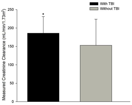 - Udy, A.; Boots, R.; Senthuran, S.; Stuart, J.; Deans, R.; Lassig-Smith, M.; Lipman, J. Augmented creatinine clearance in traumatic brain injury. Anesth. Analg. 2010, 111, 1505–1510. [Google Scholar] [CrossRef] [PubMed]