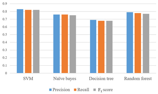 Comparison of classification models in terms of the macro-average precision, recall, and F1-score.