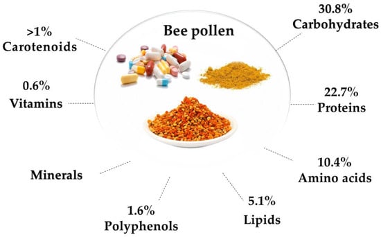 Different components of bee pollen [8,10,11,12].
