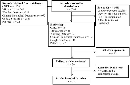 The results of this comprehensive review are reported according to the PRISMA guidelines. The protocol of this review was not prospectively registered. Articles of interest were identified by searching for the trade names, Probiokid® (non-commercial name) or Biostime® (合生元®), and for the individual strain names and numbers (Supplemental Table S1) using search engines for scientific or medical journal databases up to May 2021. Two independent assessors conducted the searches, screening against inclusion/exclusion criteria, and data extraction (A.T., X.X.). Discrepancies were solved via discussion between the two authors, and a third assessor was consulted as needed for resolution (T.A.T.). Articles in Chinese, although most had an abstract in English, were translated using Google translate and a native speaker (X.X.) performed inclusion/exclusion criteria assessment and data extraction using the original language articles. For the selection process, retrieved articles were screened by title and abstract to identify the clinical trials in pediatric populations and then examined for study design, regardless of the indication. Only studies where controls allowed for a direct assessment of the effect of the probiotic were included. These encompassed studies where the probiotic formulation was used as adjuvant with the active comparator alone used as control, studies comparing with a placebo, another probiotic (e.g., GoldenBifido, Lacidophilin), or a standard of care (e.g., Smecta®, iron dextran, phototherapy) as control, or case–control-type studies allowing for a comparison of the effect before and after the probiotic intervention. Study authors were not contacted to provide additional data.