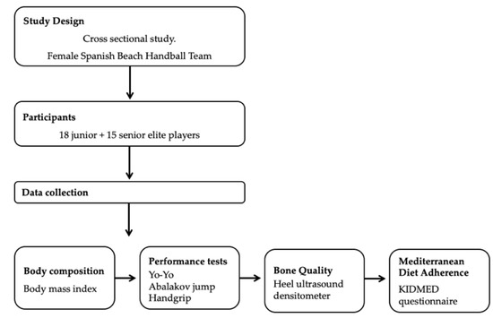 This research has some limitations. Firstly, body composition variables were measured by anthropometry and bone quality by ultrasound. Although both methods are related to bone densitometry (dual-energy X-ray absorptiometry), it was not possible to use this method, which is considered the “gold standard”. In addition, as previously indicated, the quality of the food was evaluated, but it was not possible to assess the quantity. It would be interesting to be able to make 7-day records with a photographic report, to be able to assess both quality and quantity. Due to the fact that there are not many sports played on sand, there are tests, such as the Yo-Yo, that are not validated for this surface, which is why the players presented lower values. Therefore, it would be interesting to validate this test on a sand surface. The Abalakov jump test had to be performed on a regular surface to be able to use the contact platform correctly because the sand was very unstable.