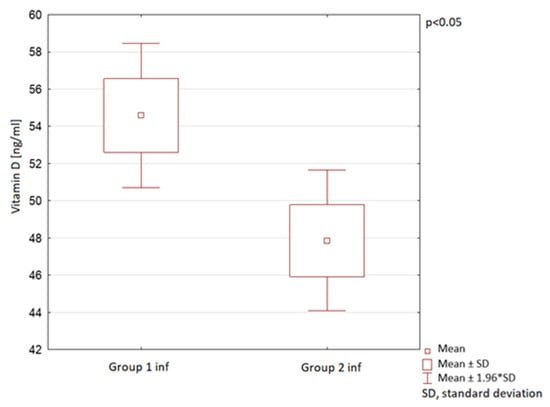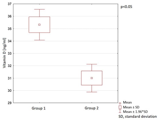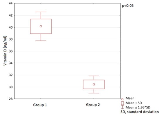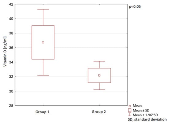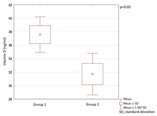 | Group 1 Vitamin D [ng/mL] | Group 2 Vitamin D [ng/mL] | p-Value | |
