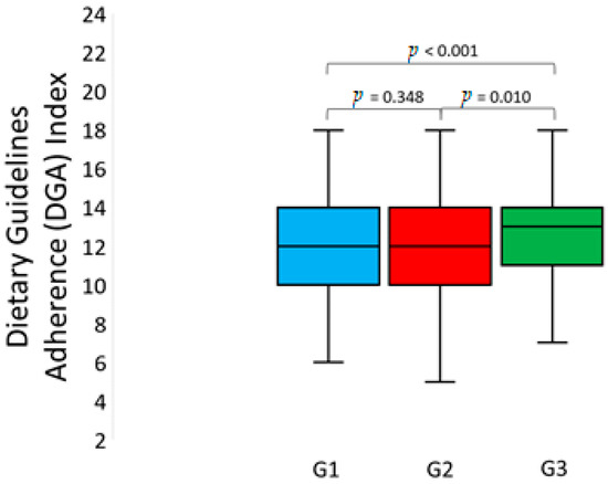 3.4. Intergroup Differences in Dietary Guidelines Adherence Index