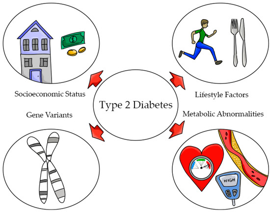 The development of type 2 diabetes is multifactorial in Hispanics. The high prevalence of the disease can be explained by socioeconomic status including low income, lack of education, acculturation; lifestyle factors including unhealthy diets and limited physical activity; and gene variants (TCF7L2, SLC16A11) and metabolic irregularities, including obesity, insulin resistance, and dyslipidemias.