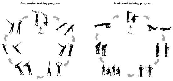 The exercise sequence for the suspension and traditional training programs.
