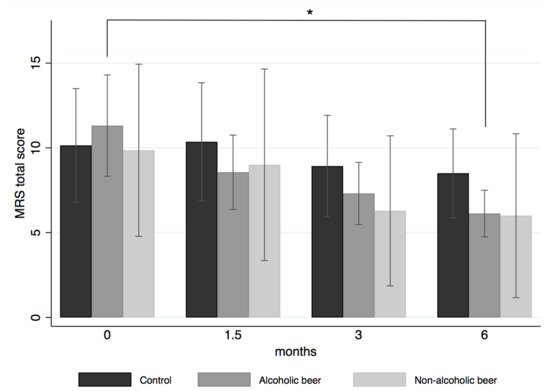 The observed reduction of psychological symptoms after 6 months of moderate beer consumption in our intervention may also be relevant, considering their notable impact on the quality of life. No significant difference was found between the AB and NAB interventions in terms of effects on these symptoms.