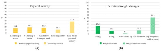 The effect of lockdown on body weight: (a) Physical activity; (b) Perceived weight changes.
