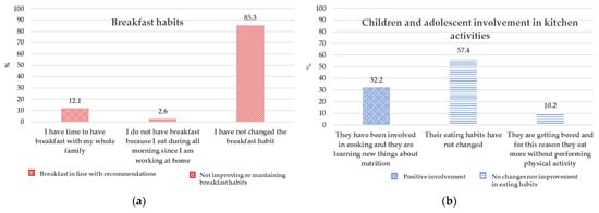 Domestic practices during lockdown: (a) Breakfast habits; (b) Children and adolescent involvement in kitchen activities.