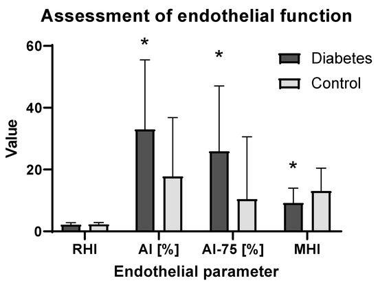 In this study, the endothelial function using the two independent methods was also evaluated. First, the vascular response was assessed using the peripheral arterial tonometry with a post-occlusive reactive hyperaemia (PORH) measured as a reactive hyperaemia index (RHI). Second, with the laser Doppler flowmetry (LDF). A diminished endothelial function was found only by using the second method.