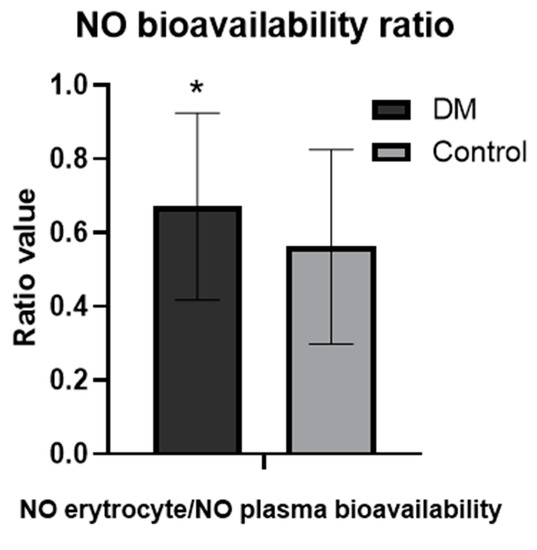 Nitric oxide (NO) bioavailability ratio. *- p < 0.05 vs. control.