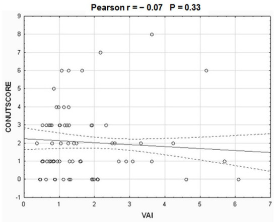 The correlation between visceral adiposity index (VAI) and body-mass index CONUT score.