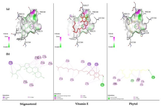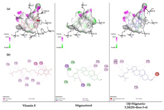 | 26 | (3β)-Stigmasta-5,24(28)-dien-3-ol | −4.73 | 1 | :UNK0:H67–A:SER116:OG |