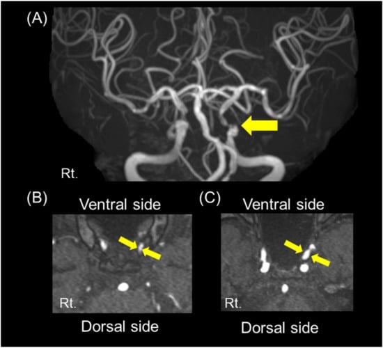 - Shitara, S.; Fujiyoshi, A.; Hisamatsu, T.; Torii, S.; Suzuki, S.; Ito, T.; Arima, H.; Shiino, A.; Nozaki, K.; Miura, K.; et al. Intracranial artery stenosis and its association with conventional risk factors in a general popilation of Japanese men. Stroke 2019, 50, 2967–2969. [Google Scholar] [CrossRef] [PubMed]