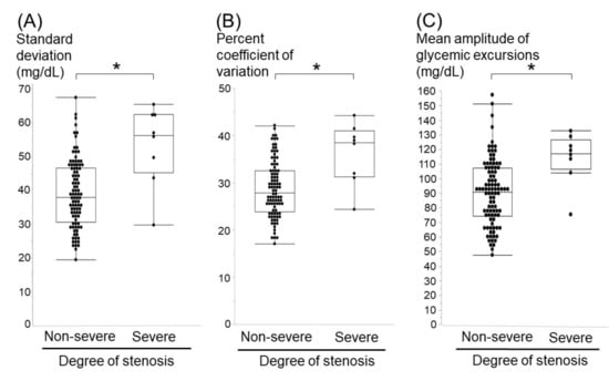 Chicago/Turabian StyleEto, Futoshi, Kazuo Washida, Masaki Matsubara, Hisashi Makino, Akio Takahashi, Kotaro Noda, Yorito Hattori, Yuriko Nakaoku, Kunihiro Nishimura, Kiminori Hosoda, and et al. 2021. "Glucose Fluctuation and Severe Internal Carotid Artery Siphon Stenosis in Type 2 Diabetes Patients" Nutrients 13, no. 7: 2379. https://doi.org/10.3390/nu13072379