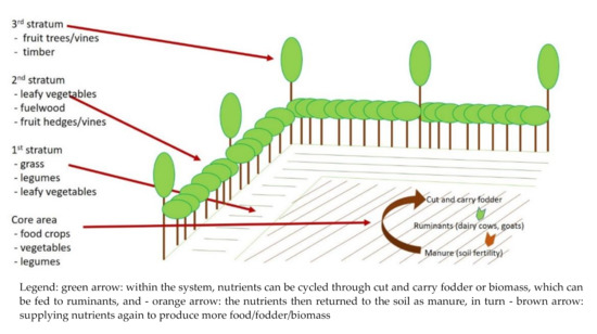 Figure 2. Three Strata Food System adapted from the Three Strata Forage System from Nitis et al. [30]. Image made by Thomas Hilger.