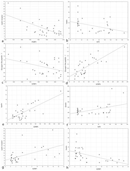 - Bideci, A.; Cinaz, P.; Hasanoglu, A.; Elbeg, S. Serum levels of insulin-like growth factor-I and insulin-like growth factor binding protein-3 in obese children. J. Pediatr. Endocrinol. Metab. 1997, 10, 295–300. [Google Scholar] [CrossRef]