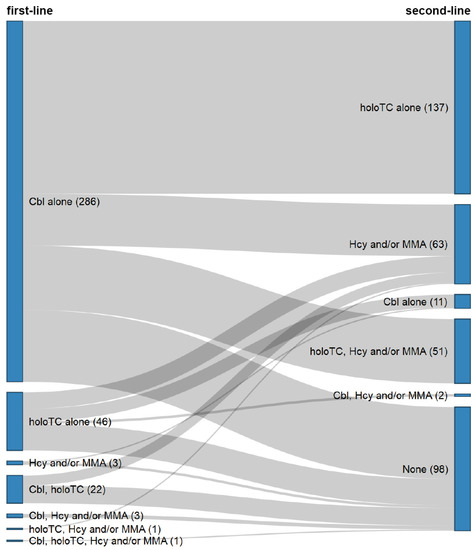 - Devalia, V.; Hamilton, M.S.; Molloy, A.M.; British Committee for Standards in Haematology. Guidelines for the diagnosis and treatment of cobalamin and folate disorders. Br. J. Haematol. 2014, 166, 496–513. [Google Scholar] [CrossRef]