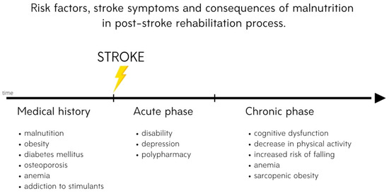 Risk factors, stroke symptoms and consequences of malnutrition in the post-stroke rehabilitation process.