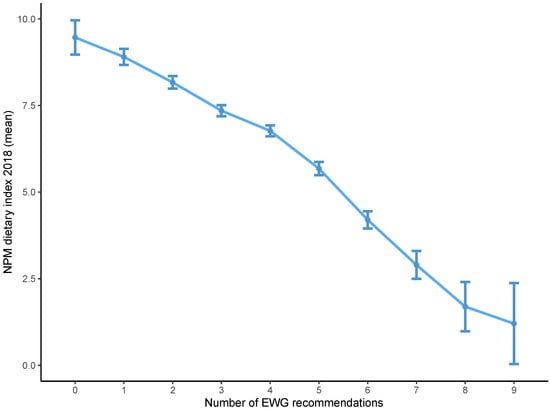 | EWG Score | Number Individuals | NPM Dietary Index 2018 (Mean, SD) | NPM Dietary Index 2005 (Mean, SD) |