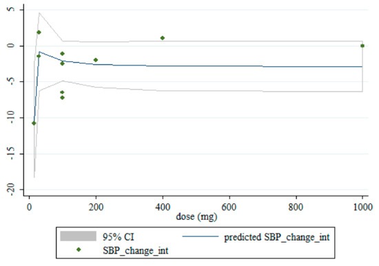 Non-linear dose-response relationships between saffron supplementation and absolute mean differences. Dose-response relationships between saffron dosage and absolute mean differences in SBP.