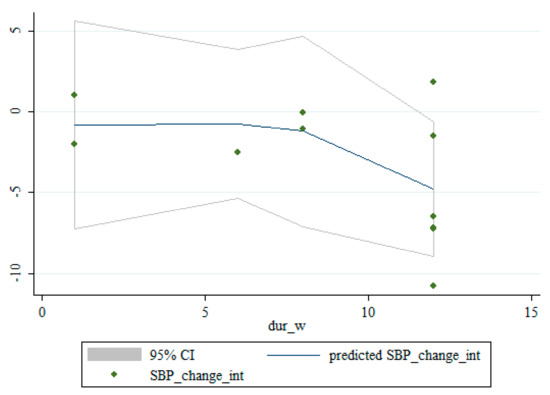 Non-linear dose-response relationships between saffron supplementation and absolute mean differences. Dose-response relationships between the duration of intervention and absolute mean differences in SBP.