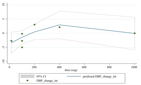 Non-linear dose-response relationships between saffron supplementation and absolute mean differences. Dose-response relationships between the saffron dosage and absolute mean differences in DBP.
