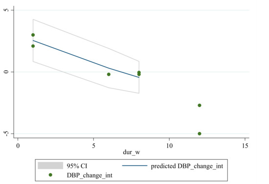 Sensitivity analysis for SBP and DBP showed that the overall estimate was not affected by sequential omission of any study.