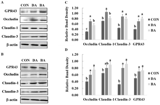 2.4.3. Expression of Tight Junction Proteins and GPR-43