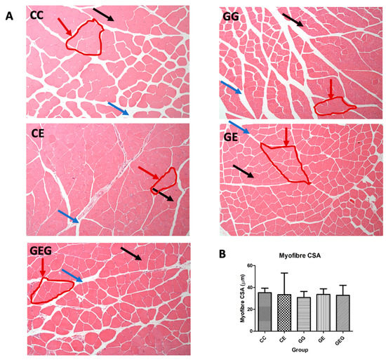 3.4.2. Muscle Histological Assessment