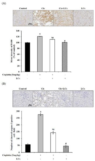 However, LCs co-administration after cisplatin treatment reduced F4/80 protein expression, which indicated that LCs could prevent macrophage infiltration.