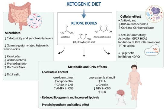 - Paoli, A.; Bosco, G.; Camporesi, E.M.; Mangar, D. Ketosis, Ketogenic Diet and Food Intake Control: A Complex Relationship. Front. Psychol. 2015, 6, 27. [Google Scholar] [CrossRef] [PubMed]