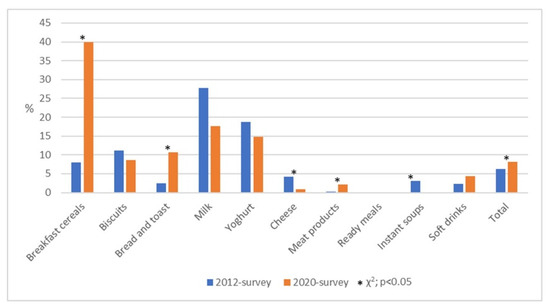 However, the increase of labelled nutrition claims was not obvious in all examined product categories. The largest increase was recorded in the category of breakfast cereals, which also represent products with the highest proportion of both nutrition and health claims, in line with the findings of other researchers [28,29].