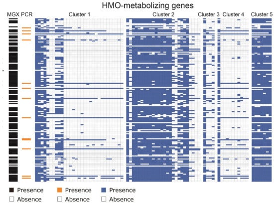 2.9. Confirmation of HMO-Metabolizing Genes in the Metagenomes by PCR