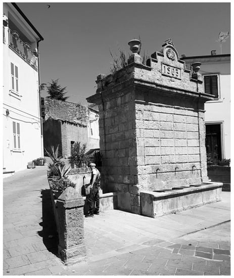 Although tap water is generally safe, in many areas of the world, bottled mineral water is preferred for daily usage due to several reasons, including a better taste []. This is the case of the population living on the island of Sardinia, which in the last few decades became one of the Italian regions with the highest percentage of people consuming bottled water because of distrust of using tap water as a primary drinking source []. However, older Sardinians have spent the most part of their life consuming spring water from local sources, which are widespread throughout the island, especially in rural areas (Figure 1).