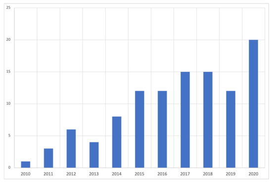 Year of publication analysis for initial search timeline (2010–2020).