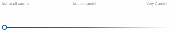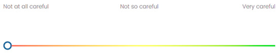 Participants were randomly assigned to one of two communication schemes (experimental conditions). The first communication scheme consisted of a monochromatic color bar scale (dark blue = not at all careful, blue = not so careful, whitish pale blue = very careful) presented in Figure 1. The second one included a multi-color bar scale (red = not at all careful, yellow = not so careful, green = very careful.) shown in Figure 2.